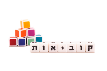 // 60 קוביות המורכבות מ 53 קוביות אלף-בית ו-7 קוביות צבעוניות (ג'וקר)